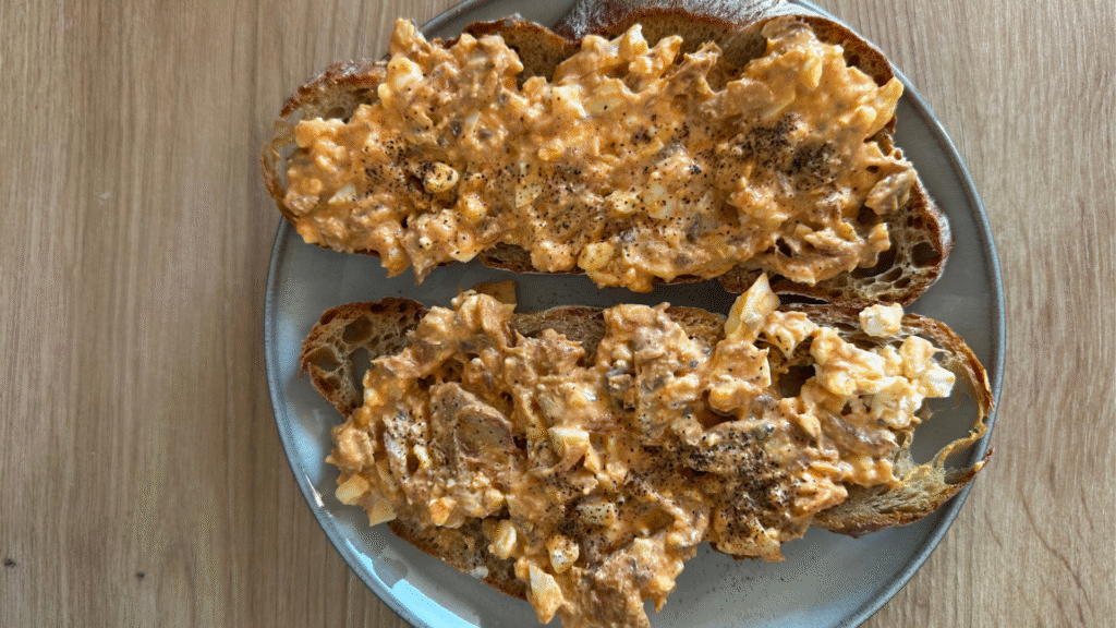Szakszuka z awokado i pitą parmezanową z białek jaj